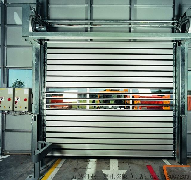 硬质融水快速门具有可靠性、实用性、耐久性、易操作性以及低 廉的维修费用和 低噪 音等性能。在工业应用中,每年正常无故障动作可达15万次以上。门板条为双层结构,可以抵抗强风和暴风雨及大雪的侵袭。根据需要,还可以将隔热铝制板条和透明的板条组合安装起来。板条在卷起时相互无接触,这样可以保持板条常年无变形、无磨损。另外板条之间也没有直接连接, 它们的两端是和可以卷绕的钢带螺接在一起,各板条之间用密封胶条连接,这样既可以节省空间,又可以保证门帘不变形,而且板条的更换也非常简单、快捷。